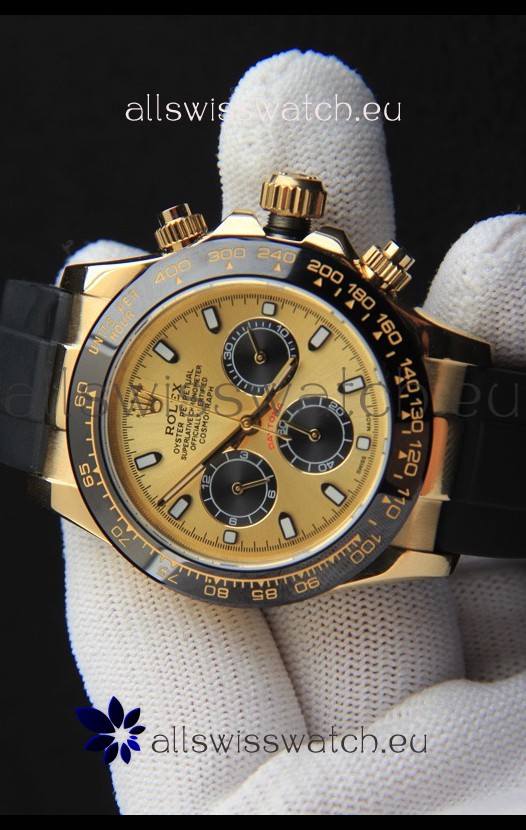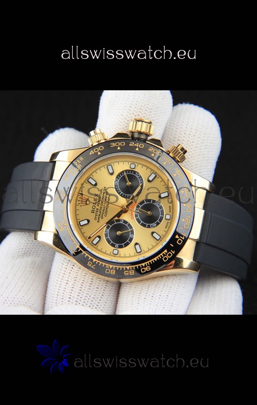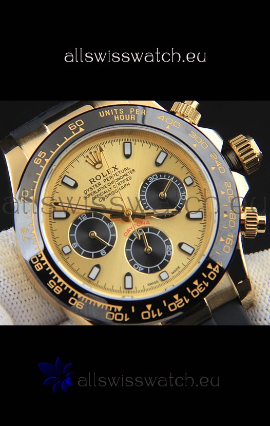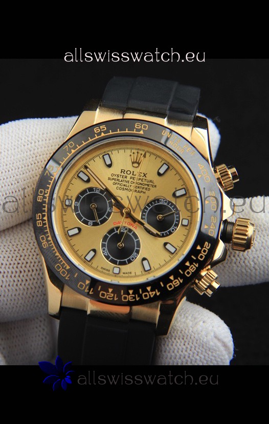 You're reviewing: Rolex Daytona Japanese Movement Gold Casing Replica Watch in Gold Dial