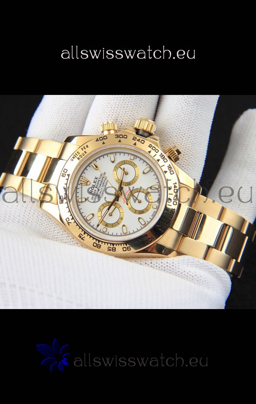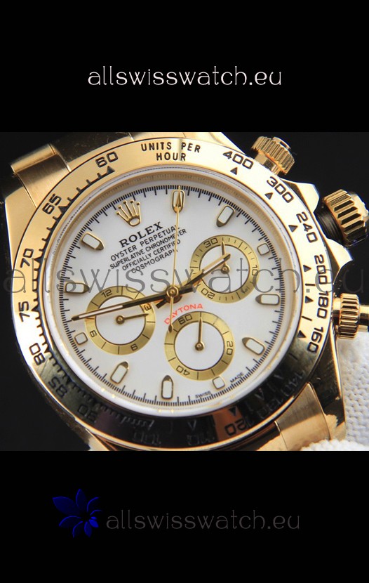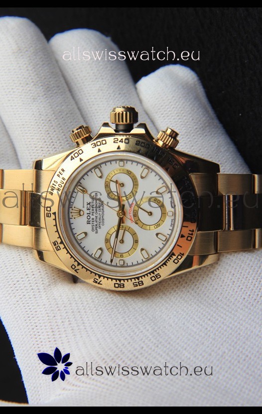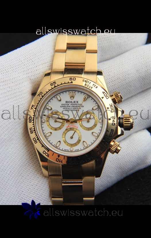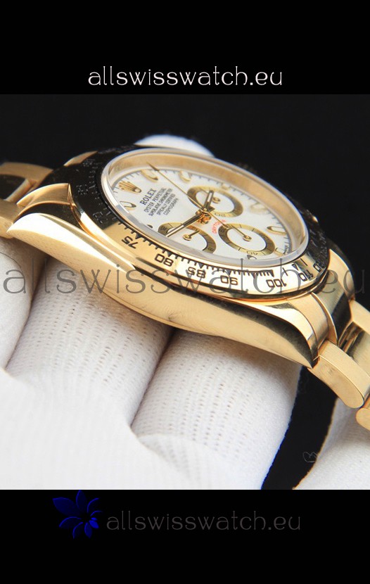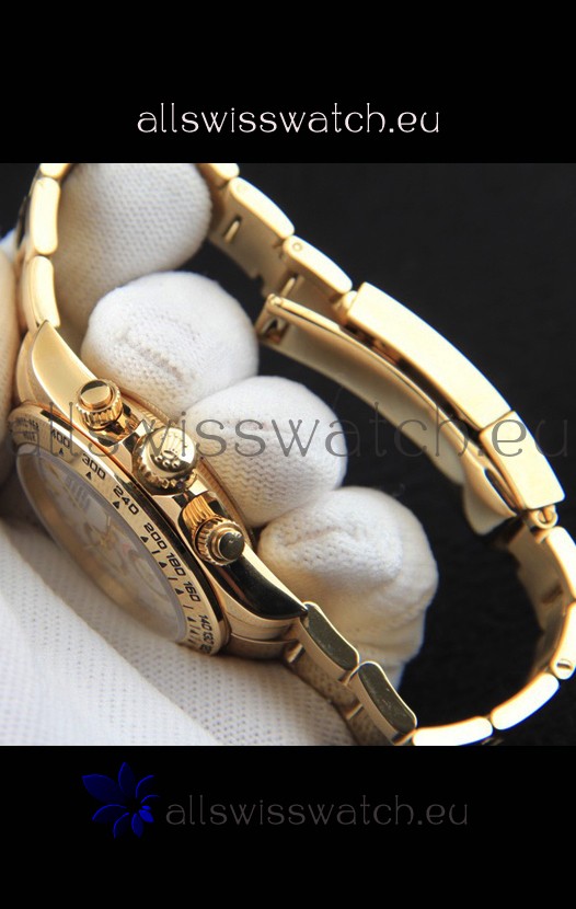 Rolex Daytona Japanese Movement Gold Casing Replica Watch in White Dial