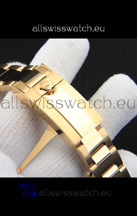 18K Gold Plating on 904L Solid Stainless Steel Case with Rolex Markings and Engravings