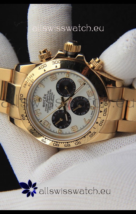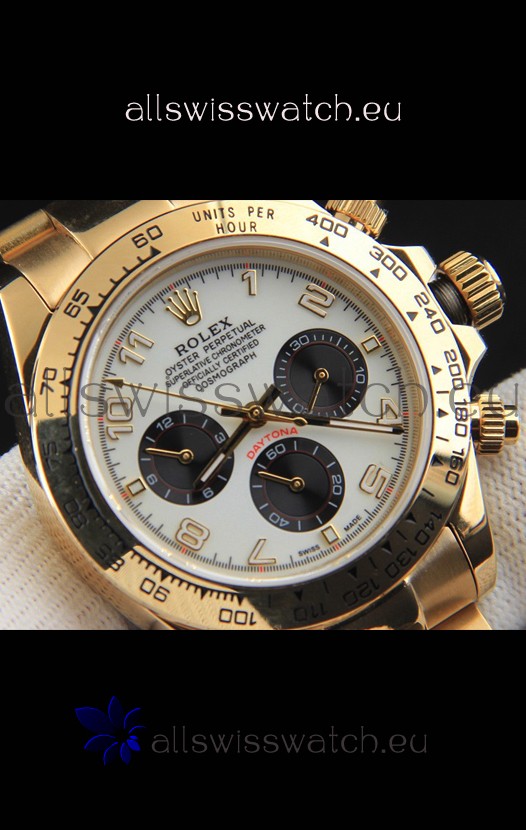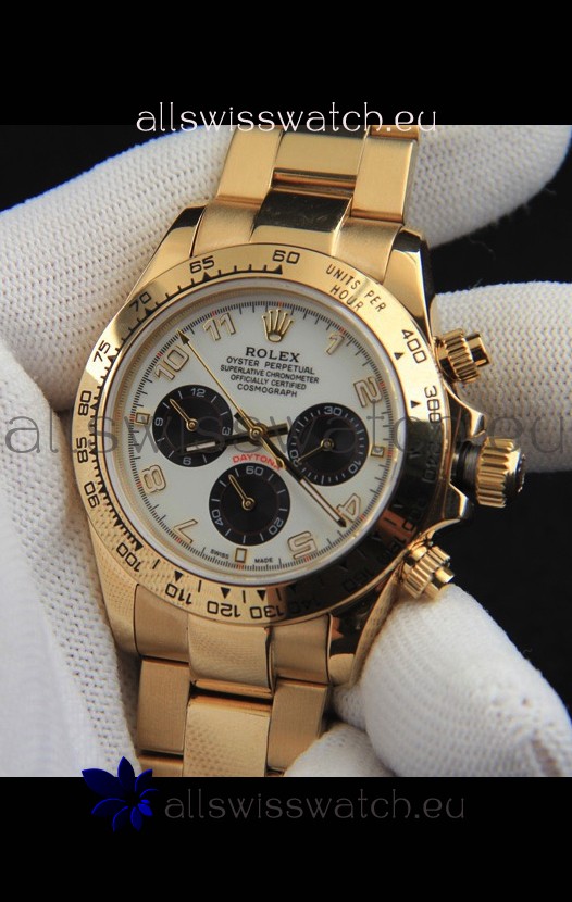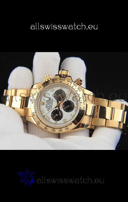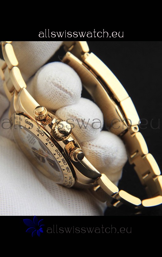 Rolex Daytona Japanese Movement Gold Casing Replica Watch in White Dial