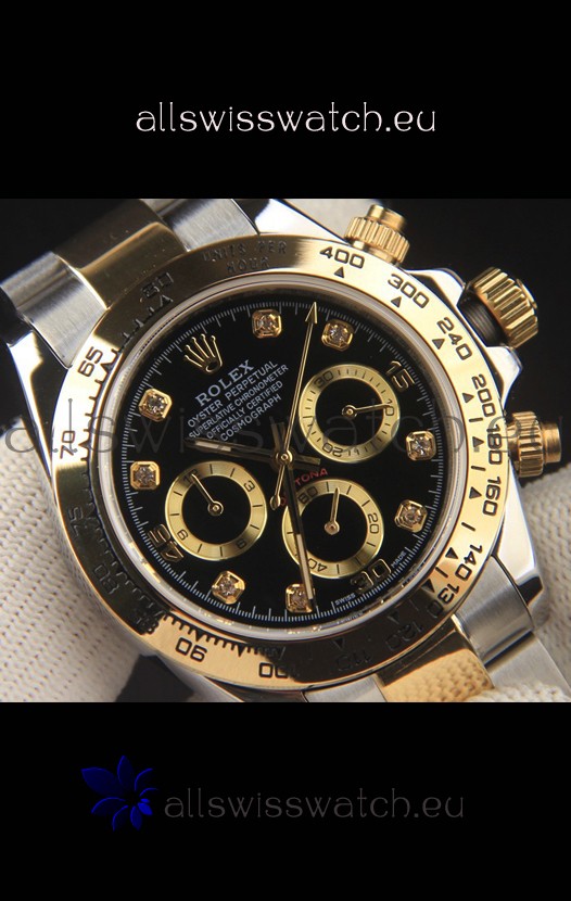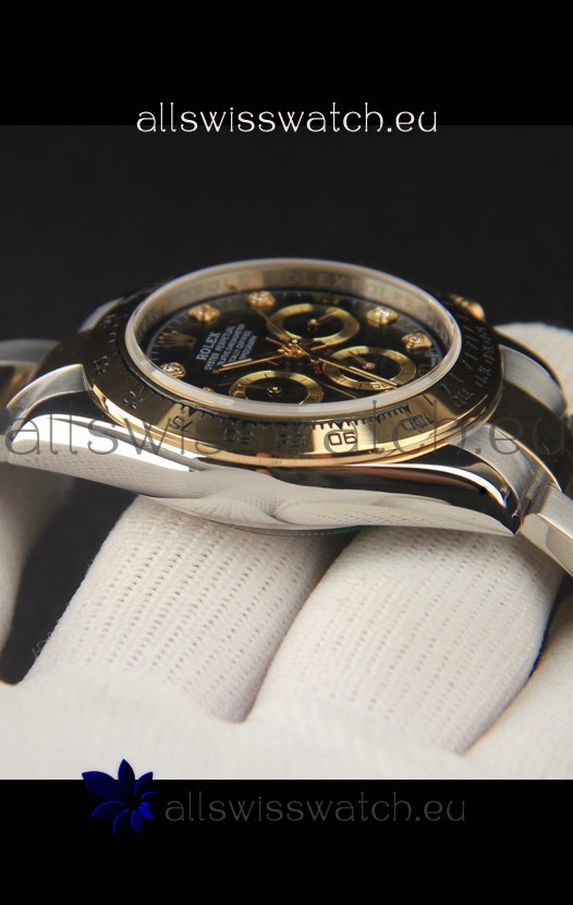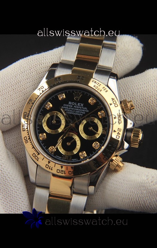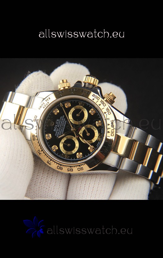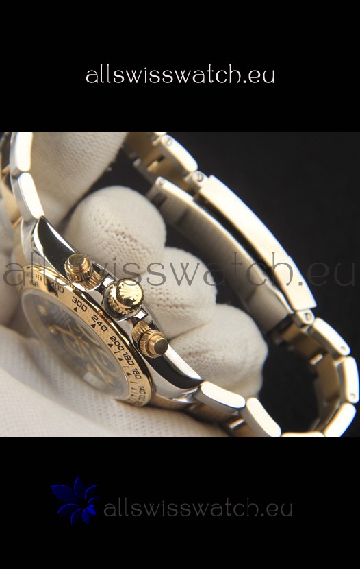 Rolex Daytona Japanese Movement Two Tone Gold Casing Watch in Black Dial