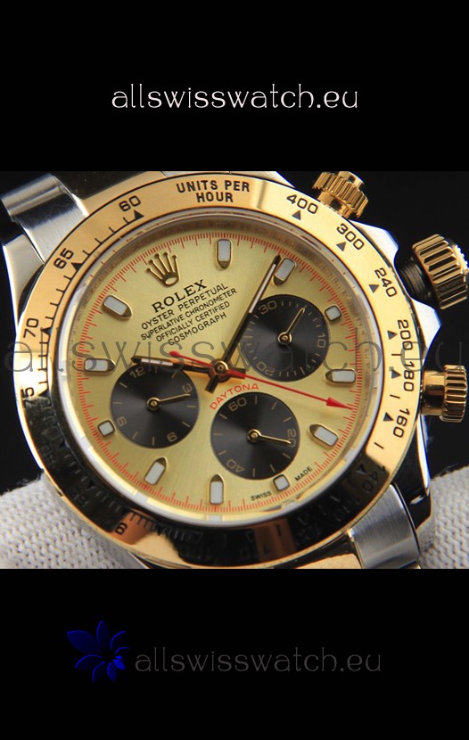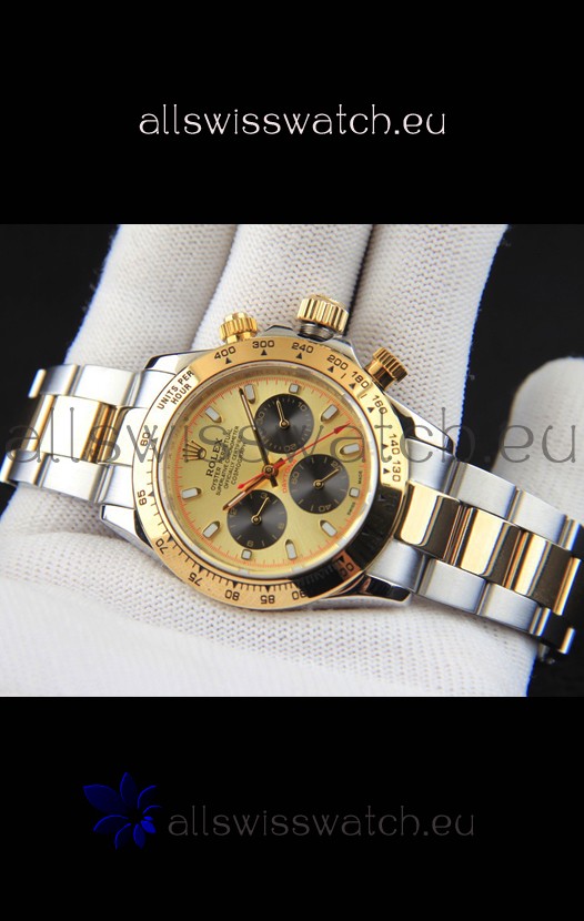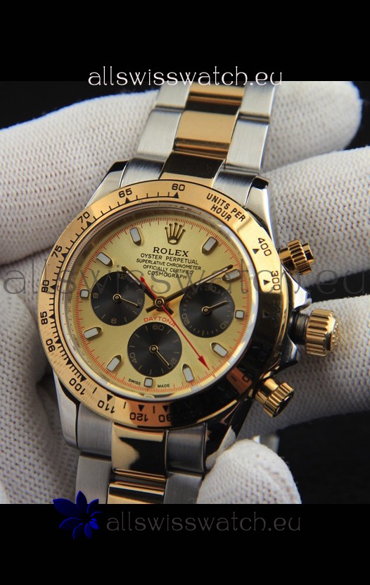 Rolex Daytona Japanese Movement Two Tone Gold Casing Watch in Gold Dial