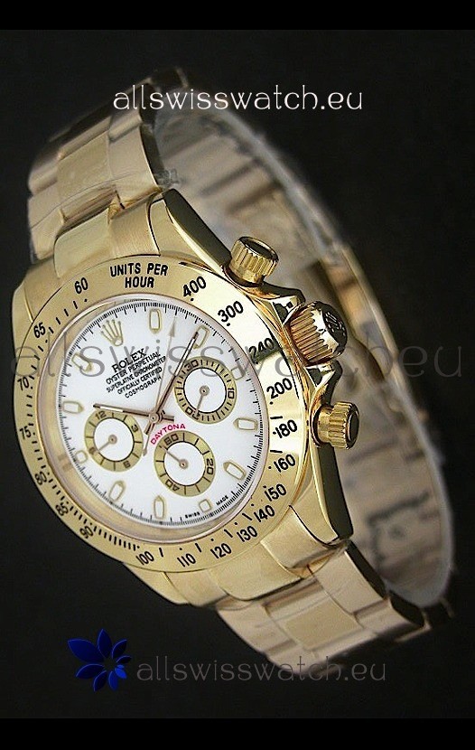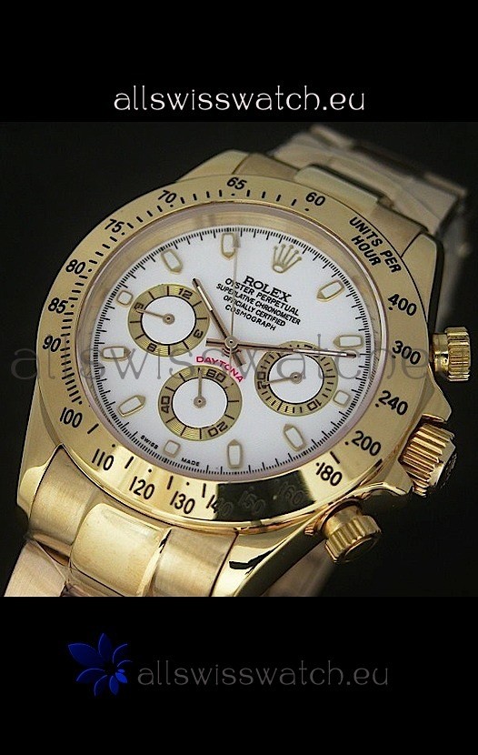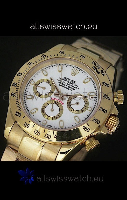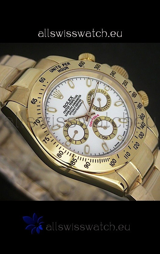 Watch name: Rolex Daytona Japanese Replica Gold Watch in White Dial