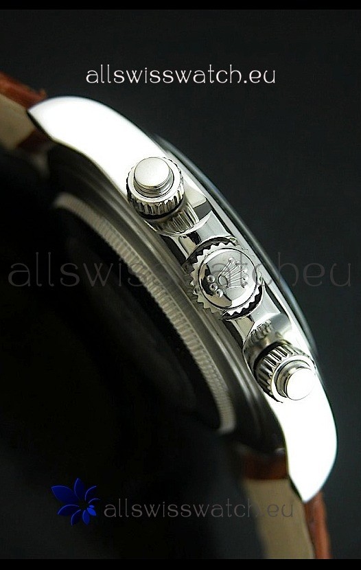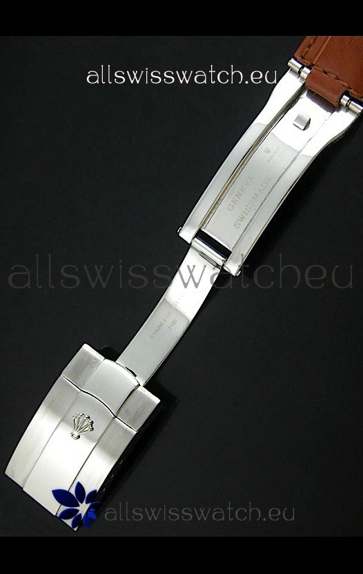 Strap: Genuine Brown Leather Strap with Rolex Markings and Engravings on Strap and Clasp