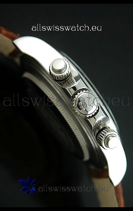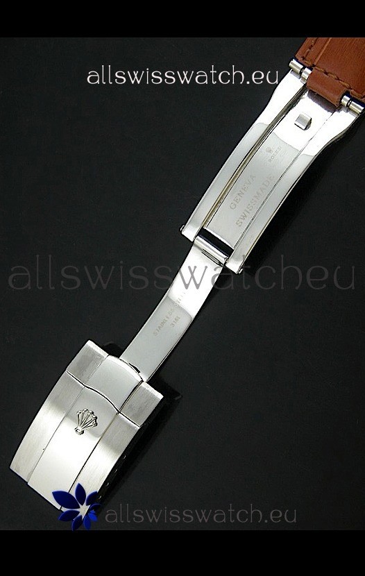 Strap: Genuine Brown Leather Strap with Rolex Markings and Engravings on Strap and Clasp