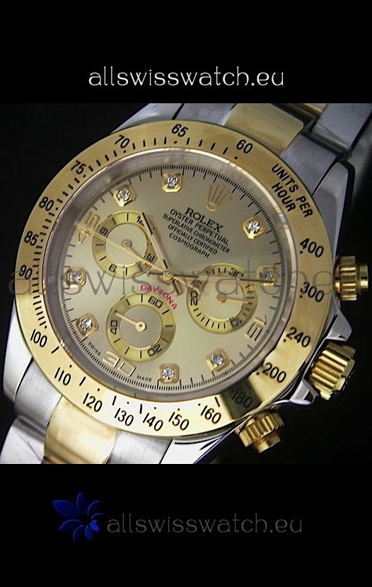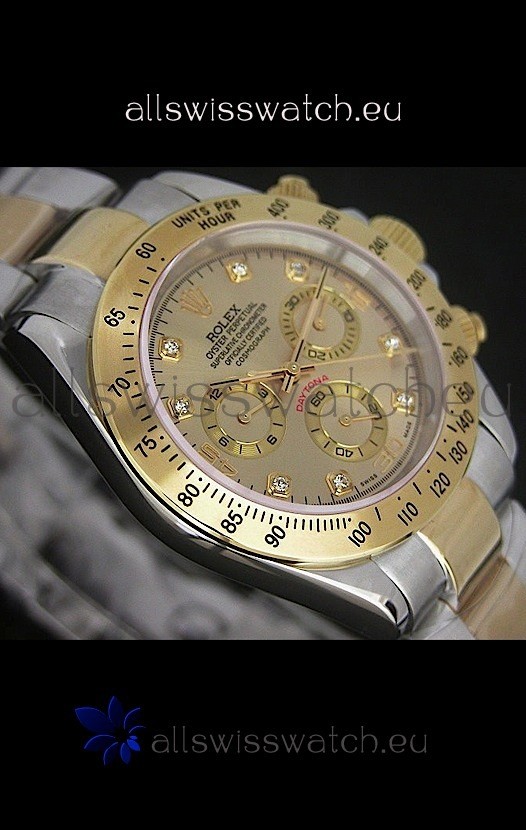 Watch name: Rolex Daytona Japanese Replica Two Tone Gold Watch in Golden Dial