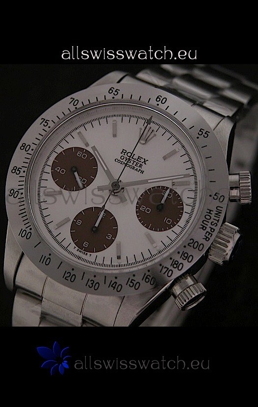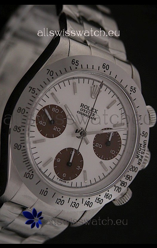 Rolex Daytona Oyster Perpetual Swiss Replica Steel Watch in White Dial