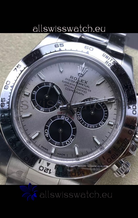 The Best Rolex Daytona Model Replicated up to Date. The First Rolex model to adopt a 904L Steel on Casing and Strap which is the same steel used by Rolex. Compared with an Original Side by Side and there were NO Differences Whatsoever. Complete list of details have been stated below and you will see that tremendous amount of detaiing and work has been put into this edition.