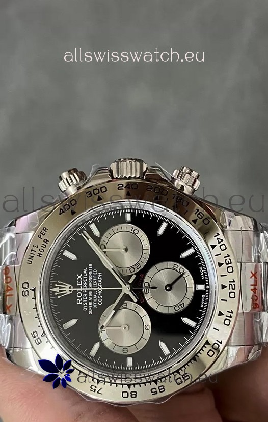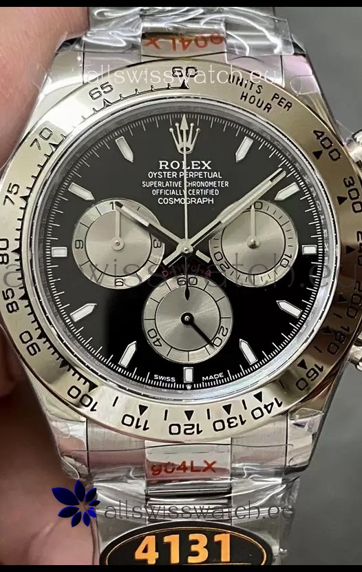 The Best Rolex Daytona Model Replicated up to Date. The First Rolex model to adopt a 904L Steel on Casing and Strap which is the same steel used by Rolex. Compared with an Original Side by Side and there were NO Differences Whatsoever. Complete list of details have been stated below and you will see that tremendous amount of detaiing and work has been put into this edition.