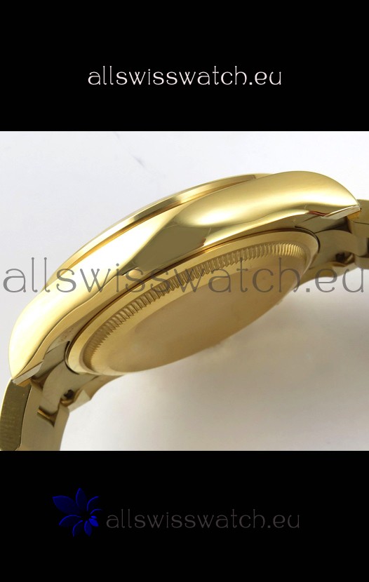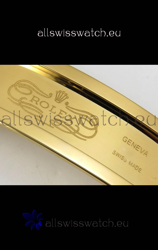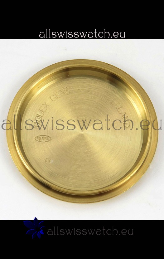 Yellow Gold Plating on 904 Solid Stainless Case with Rolex Markings and Engravings like the Authentic.