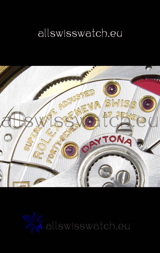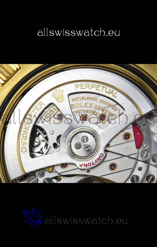 Genuine Cal.4131 Movement built from Scratch with no modifications, Platinum Plating on Rotors and Plates as per the original. The Same movement you find in Rolex Daytona Watches