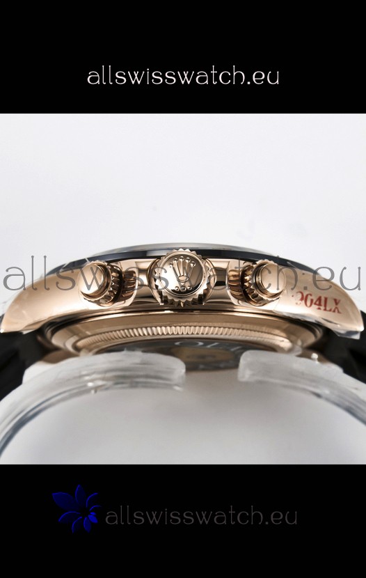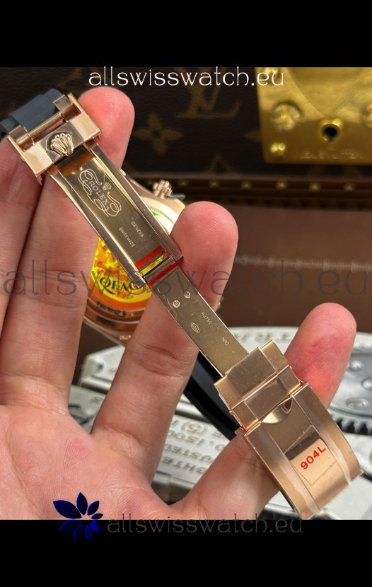 Rose Gold Plating on 904 Solid Stainless Case with Rolex Markings and Engravings like the Authentic.
