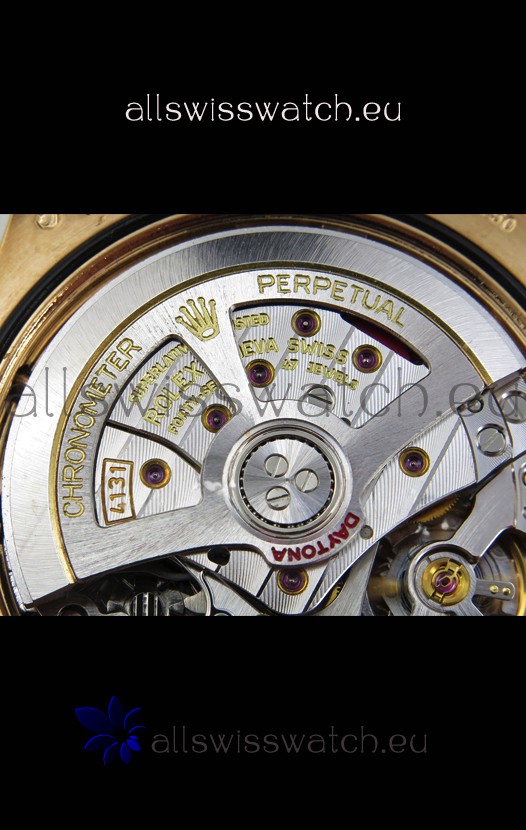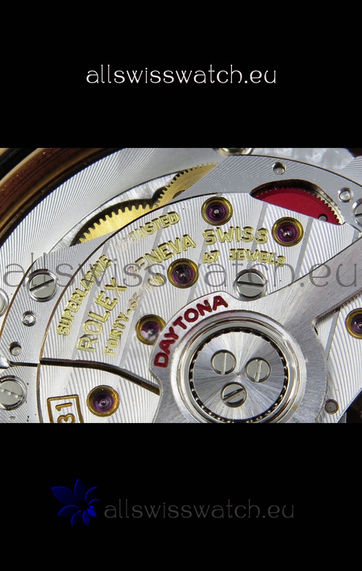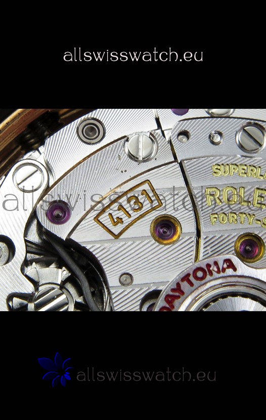 Genuine Cal.4131 Movement built from Scratch with no modifications, Platinum Plating on Rotors and Plates as per the original. The Same movement you find in Rolex Daytona Watches