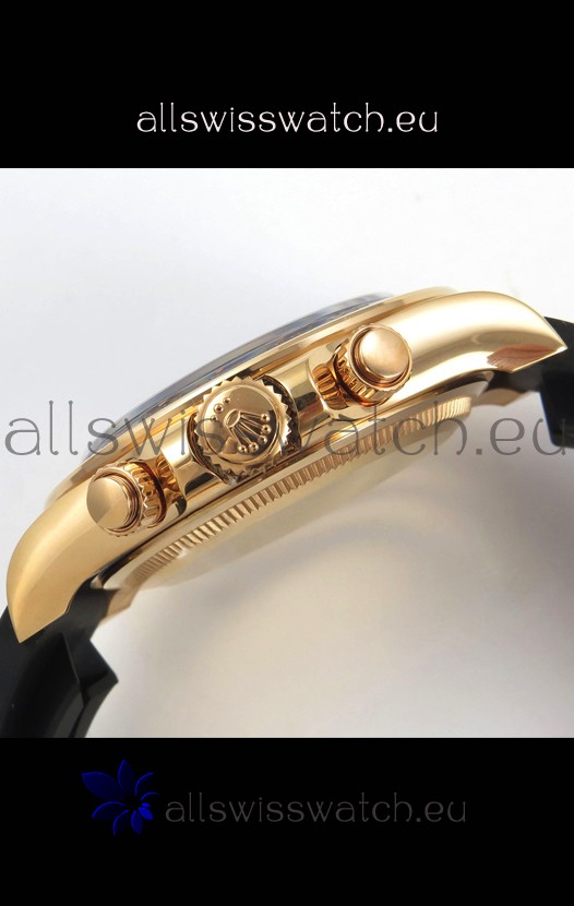 The Best Rolex Daytona Model Replicated up to Date. The First Rolex model to adopt a 904L Steel on Casing and Strap which is the same steel used by Rolex. Compared with an Original Side by Side and there were NO Differences Whatsoever. Complete list of details have been stated below and you will see that tremendous amount of detaiing and work has been put into this edition.
