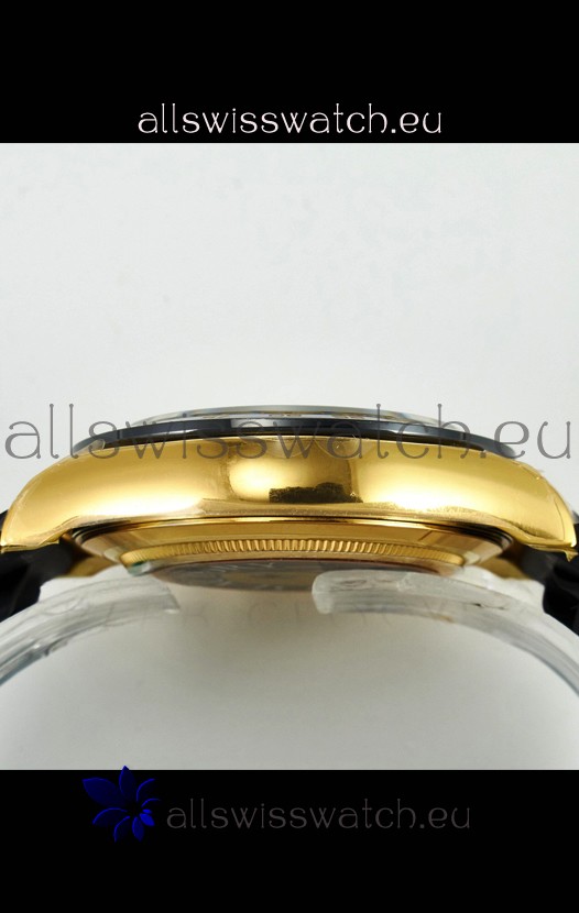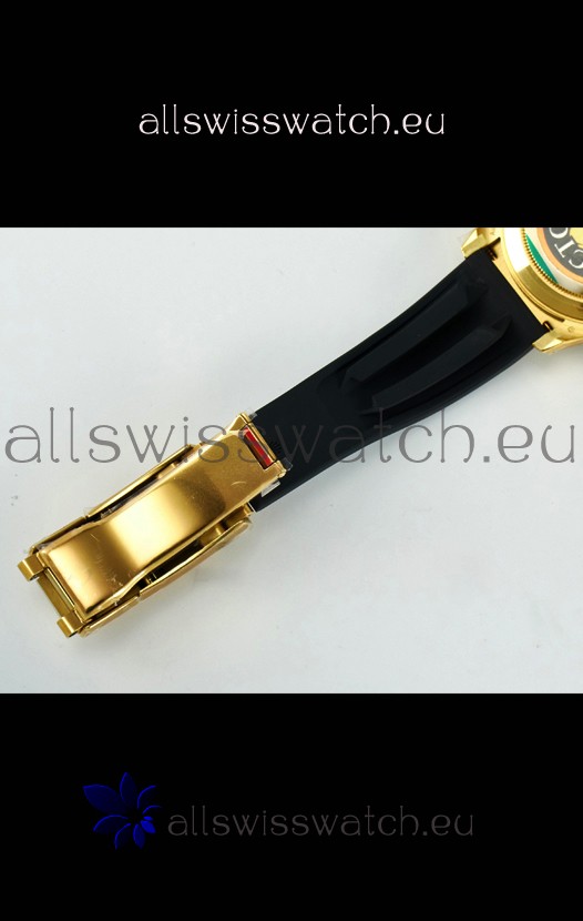 Yellow Gold Plating on 904 Solid Stainless Case with Rolex Markings and Engravings like the Authentic.