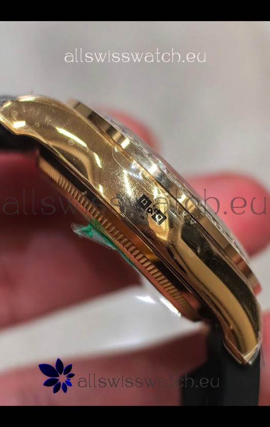 18K Yellow Gold Plating on 904 Solid Stainless Case with Rolex Markings and Engravings like the Authentic.