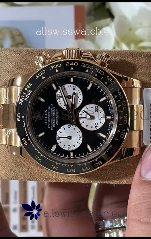 The Best Rolex Daytona Model Replicated up to Date. The First Rolex model to adopt a 904L Steel on Casing and Strap which is the same steel used by Rolex. Compared with an Original Side by Side and there were NO Differences Whatsoever. Complete list of details have been stated below and you will see that tremendous amount of detaiing and work has been put into this edition.