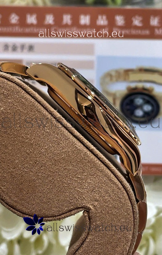 18K Rose Gold Plating on 904 Solid Stainless Case with Rolex Markings and Engravings like the Authentic.