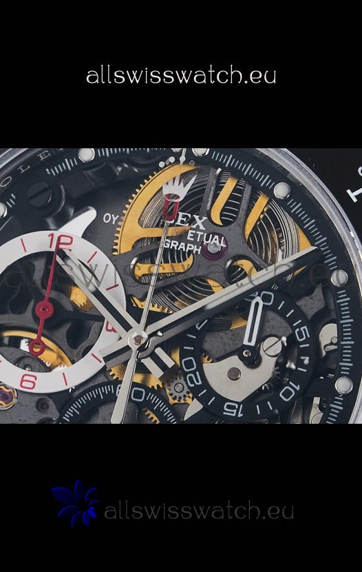Genuine Cal.4130 Movement built from Scratch with no modifications, Platinum Plating on Rotors and Plates as per the original. The Same movement you find in Rolex Daytona Watches