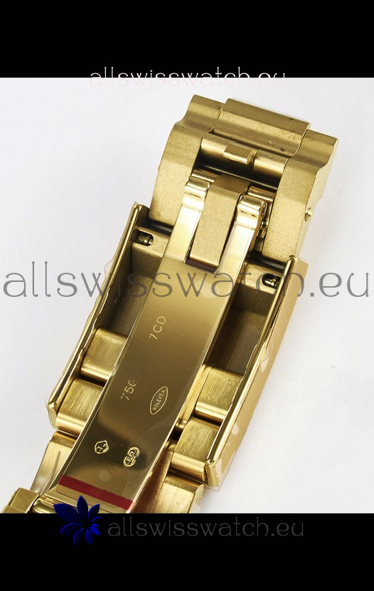 18K Yellow Gold on 904L Stainless Steel Strap linked with screws exactlty as per the Genuine complete with Revised Clasps release as per the Genuine with very Smooth Locking and detach lock systems as per the genuine