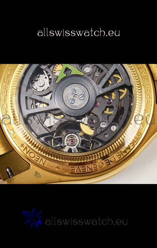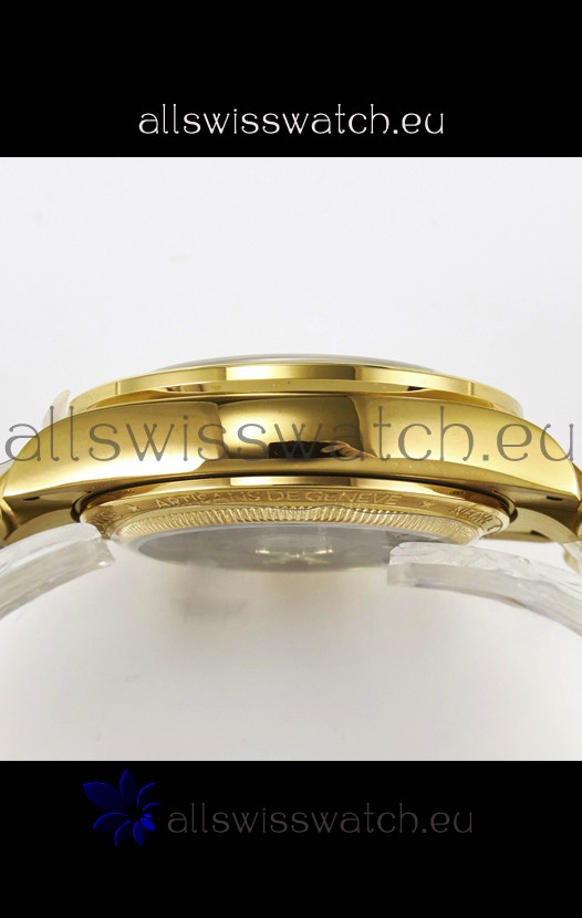 18K Yellow Gold on 904 Solid Stainless Case with Rolex Markings and Engravings like the Authentic.