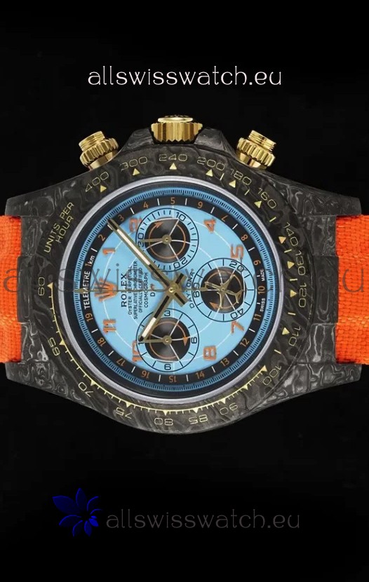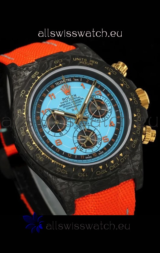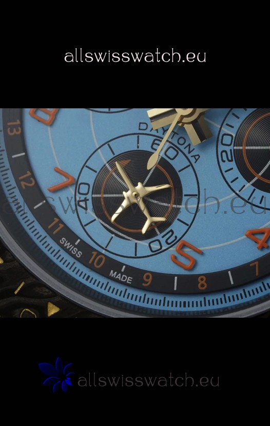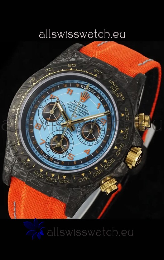 Rolex Daytona Edition Watch in Blue Dial Black Carbon Casing 1:1 Mirror Replica