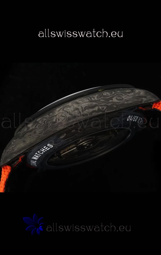 One Piece Solid Black Forged Carbon Casing with Natural Patterns. No Two watches would be alike.