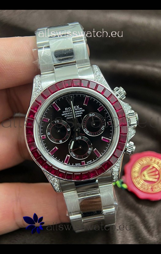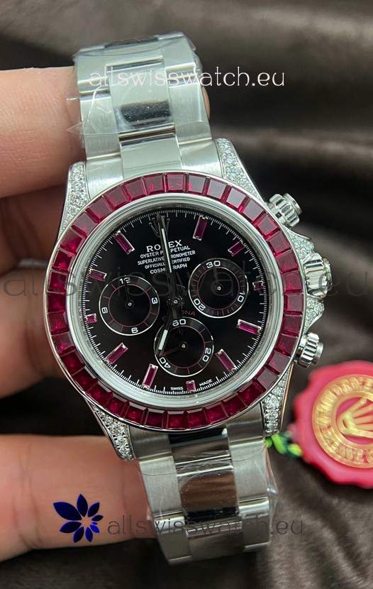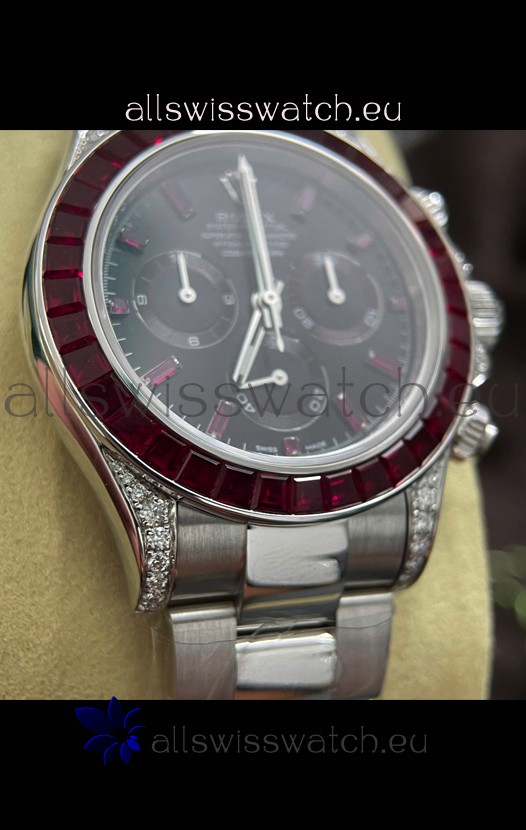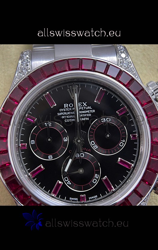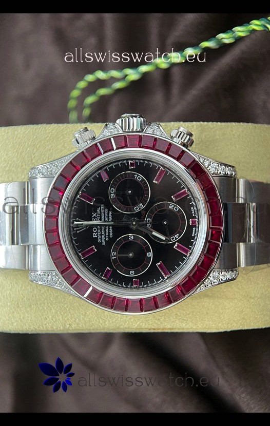 The Best Rolex Daytona Model Replicated up to Date. The First Rolex model to adopt a 904L Steel on Casing and Strap which is the same steel used by Rolex. Compared with an Original Side by Side and there were NO Differences Whatsoever. Complete list of details have been stated below and you will see that tremendous amount of detaiing and work has been put into this edition.