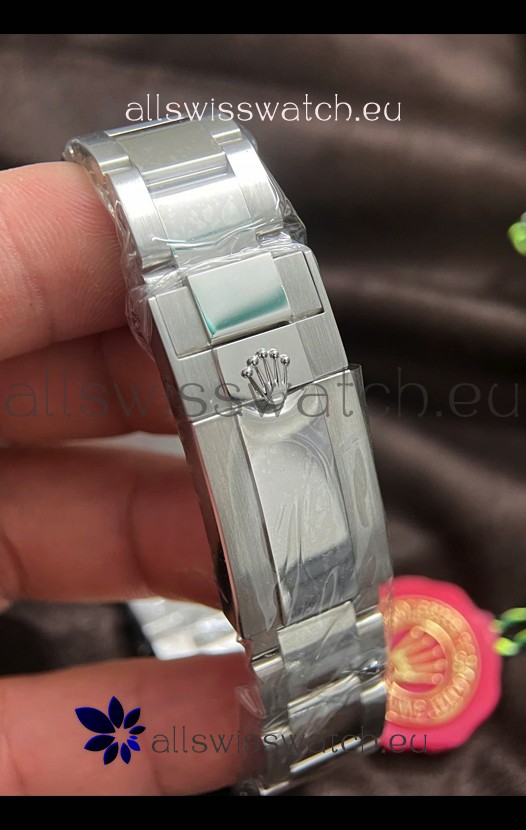 White Gold Plating on 904 Solid Stainless Case with Rolex Markings and Engravings like the Authentic.