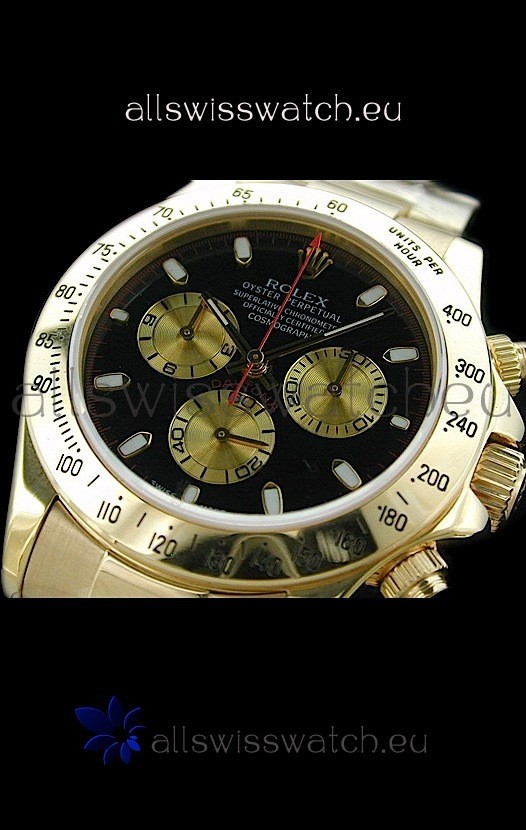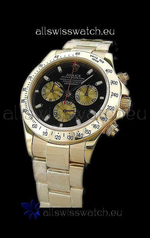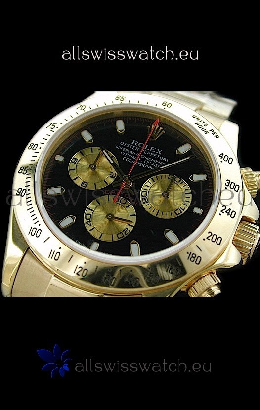 Watch name: Rolex Daytona Swiss Replica Gold Watch in Black Dial