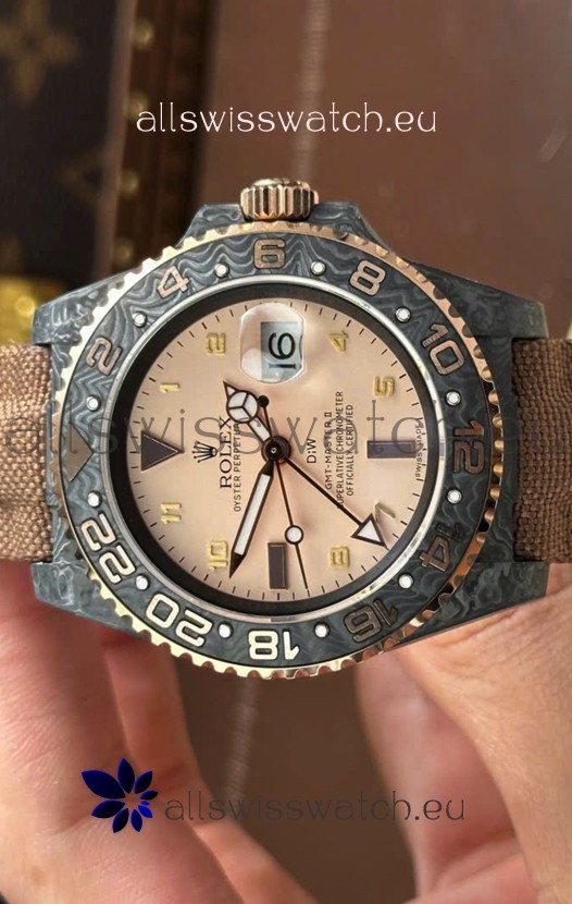 Rolex GMT Masters DiW Black Carbon Casing Swiss Replica Watch Beige Gray Dial