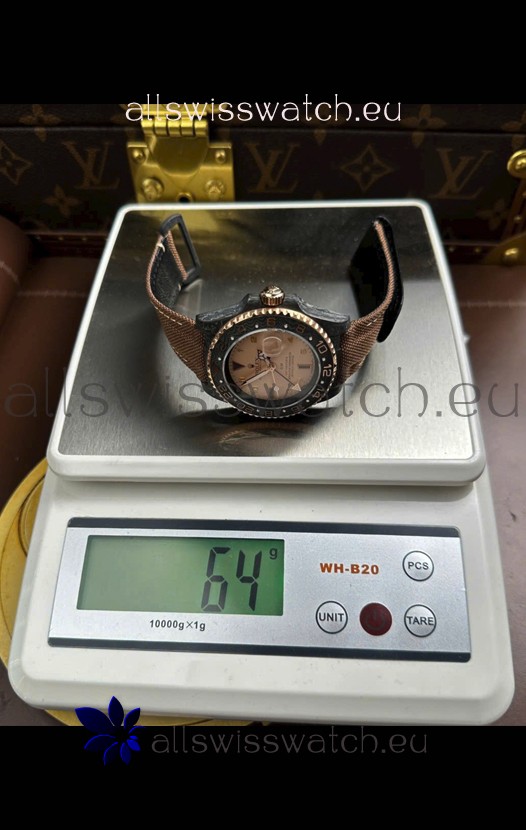You're reviewing: Rolex GMT Masters DiW Black Carbon Casing Swiss Replica Watch Beige Gray Dial