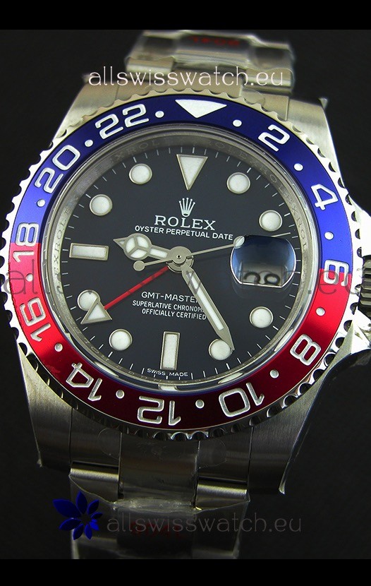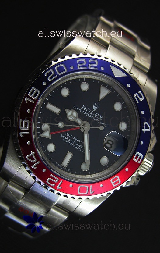 The Best Rolex GMT Model Replicated up to Date. The First Rolex model to adopt a 904L Steel on Casing and Strap which is the same steel used by Rolex.