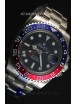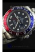 904L Stainless Steel Case as per the Orginal with Metallic Blue/Red Ceramic Inserts.