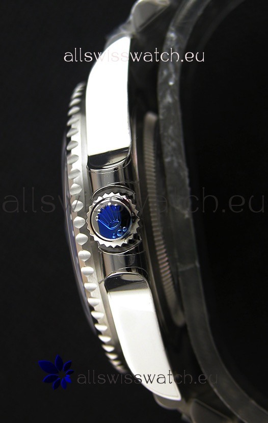 904L Stainless Steel Case as per the Orginal with Metallic Black/Blue Ceramic Inserts.
