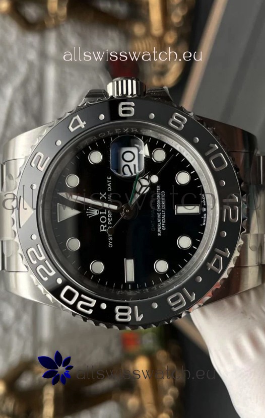 The Best Rolex GMT Model Replicated up to Date. The First Rolex model to adopt a 904L Steel on Casing and Strap which is the same steel used by Rolex.