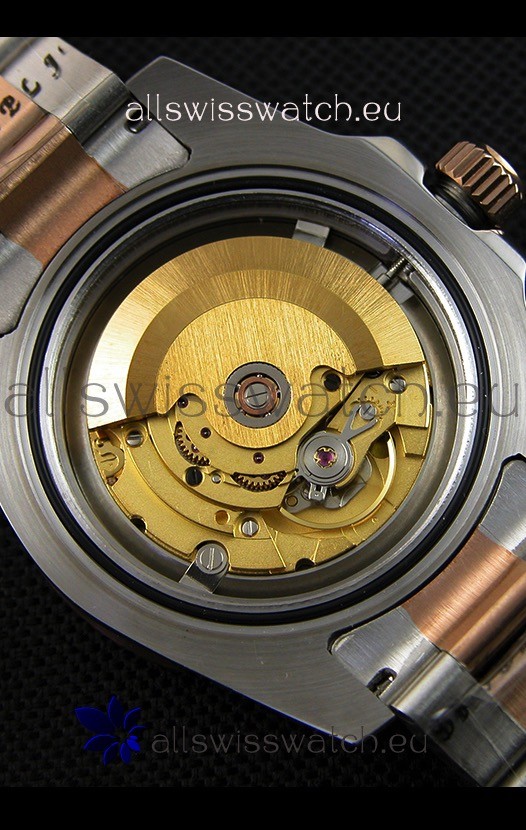 18K 10.0 Microns Thick Two Tone Gold Plating on 316L Stainless Steel Case with GMT Hand independently set via the Crown as per the Original