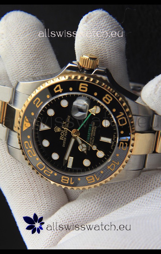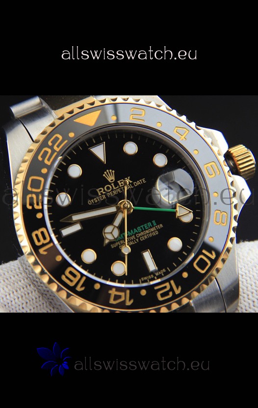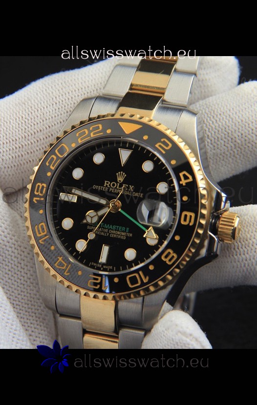 Rolex GMT Masters II Japanese Movement Replica Watch in Two Tone Black Dial