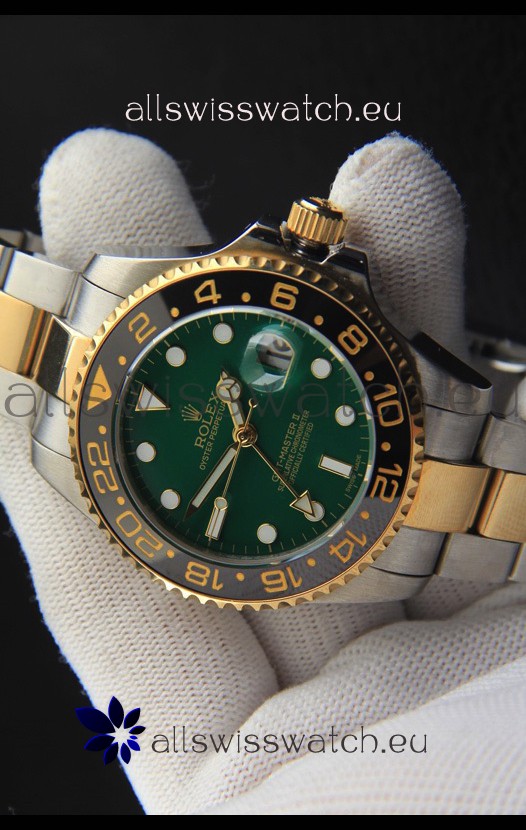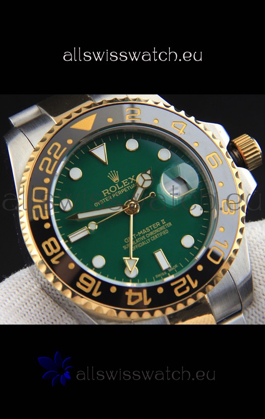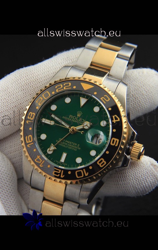 Rolex GMT Masters II Japanese Movement Replica Watch in Two Tone Green Dial