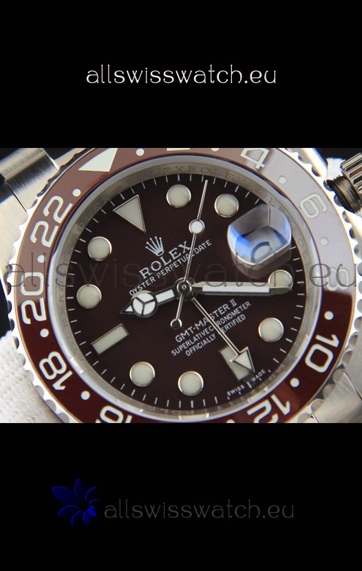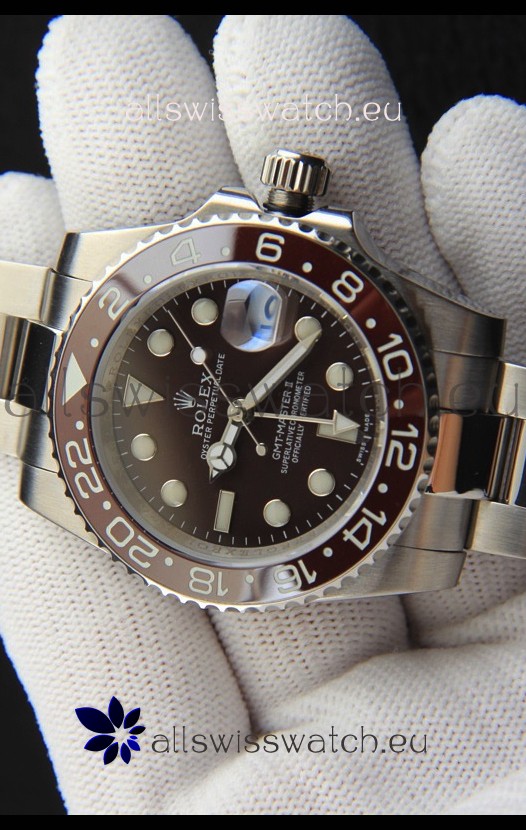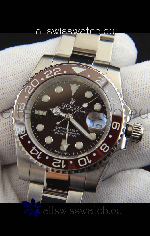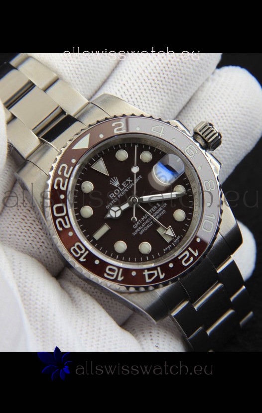 Rolex GMT Masters II Japanese Movement Replica Watch Steel Case Black Dial