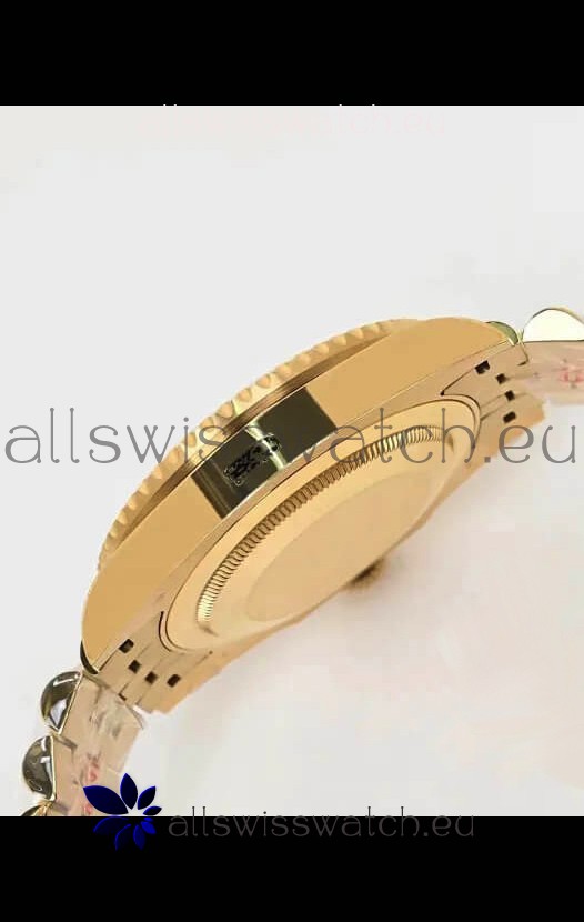 18K Yellow Gold Plating 904L Stainless Steel Case as per the Orginal with Metallic Black/Blue Ceramic Inserts.