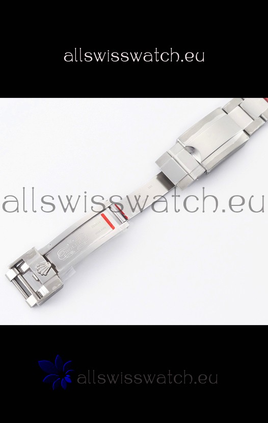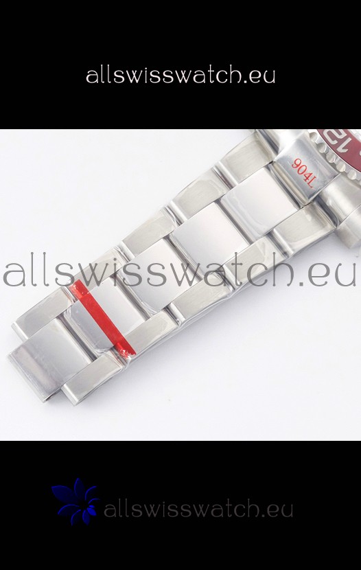 904L Stainless Steel Case as per the Orginal with Metallic Blue/Red Ceramic Inserts.