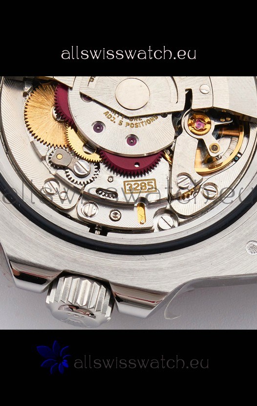 Genuine Swiss 3285 Movement; 28,800 VPH, nickel plated with very smooth sweep in seconds hands movement.