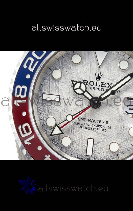 You're reviewing: Rolex GMT Masters II Super Clone 126720 Cal.3285 White Meteorite Dial 904L Steel in Oyster Strap Swiss Replica
