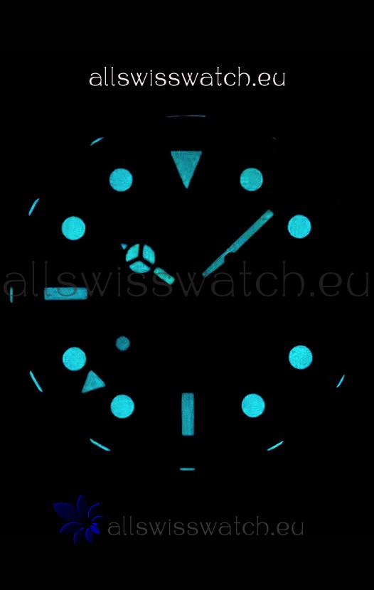 Rotating Bezel with Black/Green Ceramic Inserts with Updated Crisp Font over all previous versions. New Bezel Inserts has platinum coating applied to Dive Markers.