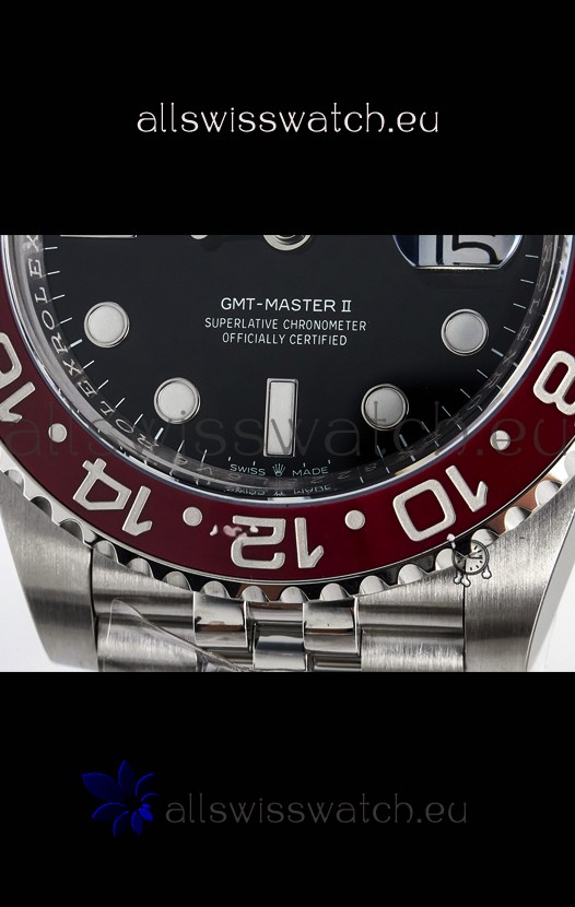 904L Stainless Steel Case as per the Orginal with Metallic Black/Red Ceramic Inserts.
