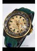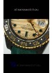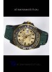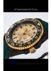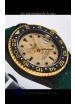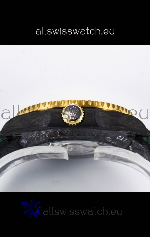 Yellow Gold Plating on Rims of Rotating Bezel with Carbon Inserts with Updated Crisp Font over all previous versions. New Bezel Inserts has platinum coating applied to Dive Markers.