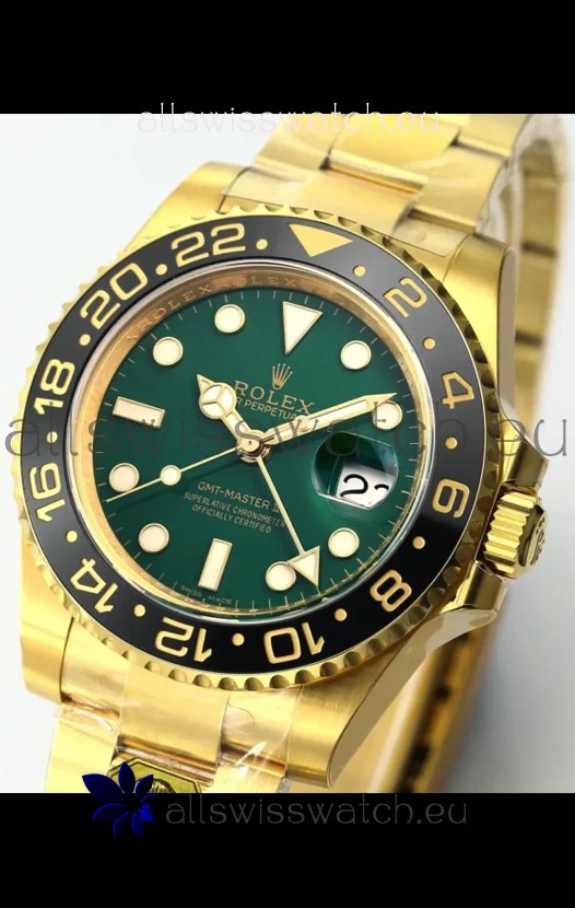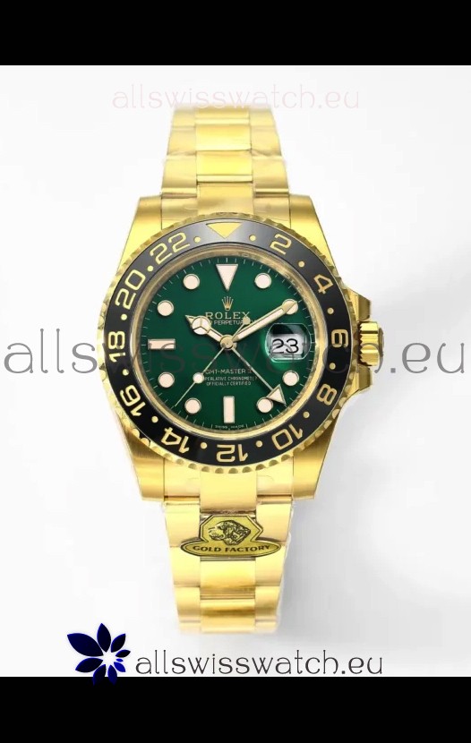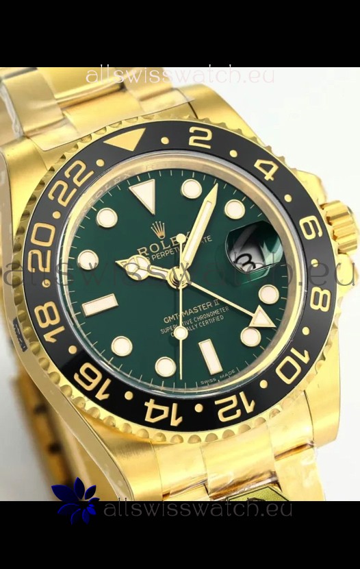 Rolex GMT Masters II Super Clone M116718 Yellow Gold Green Dial Swiss Replica Watch