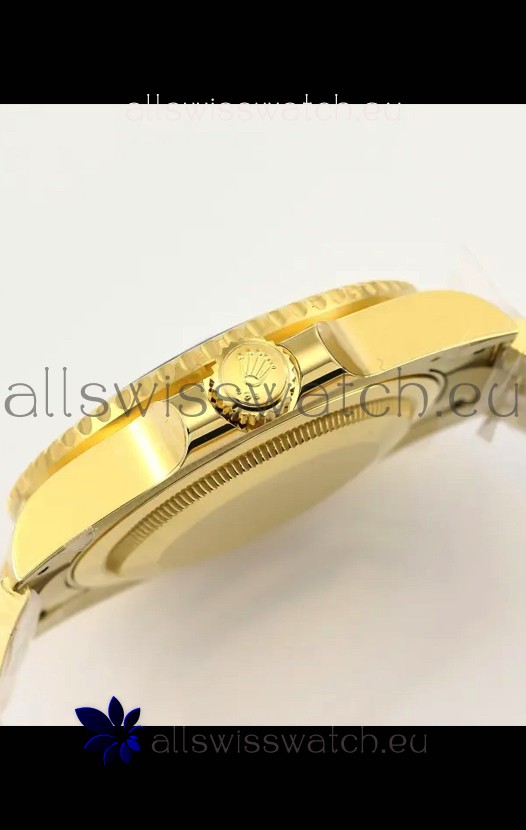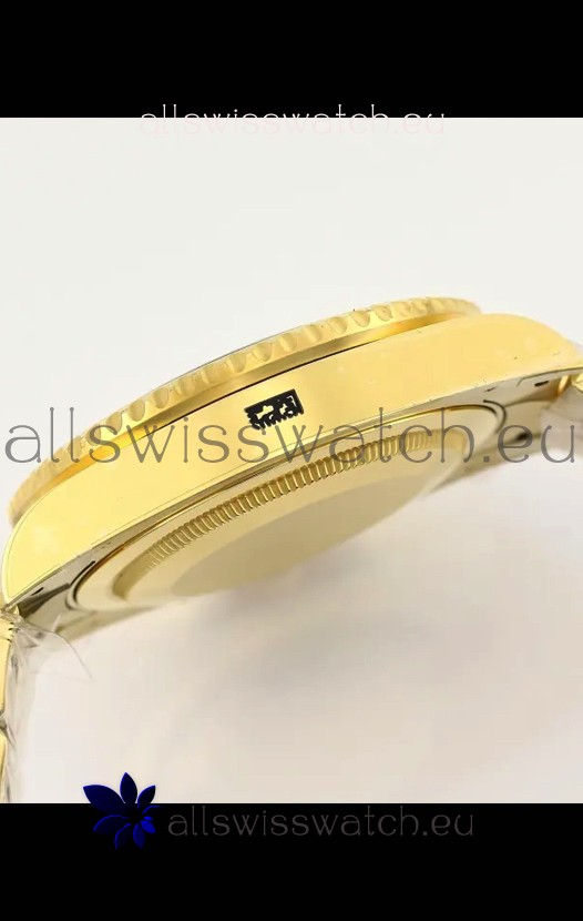 18K Yellow Gold Plating on 904L Stainless Steel Case as per the Orginal with Metallic Black/Blue Ceramic Inserts.