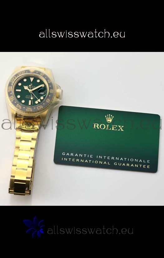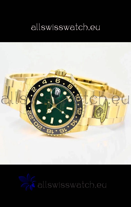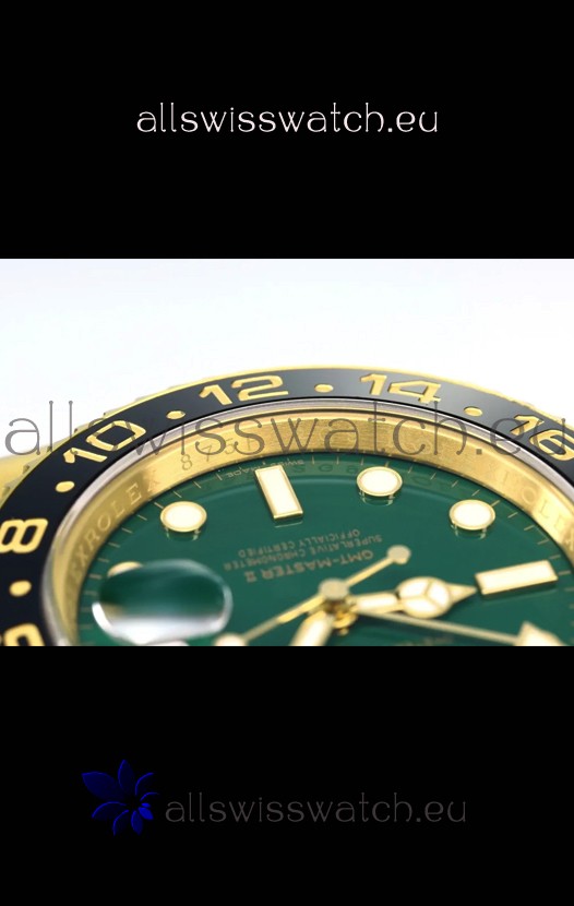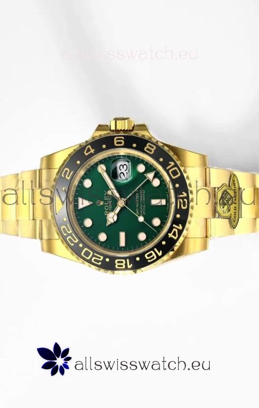 You're reviewing: Rolex GMT Masters II Super Clone M116718 Yellow Gold Green Dial Swiss Replica Watch